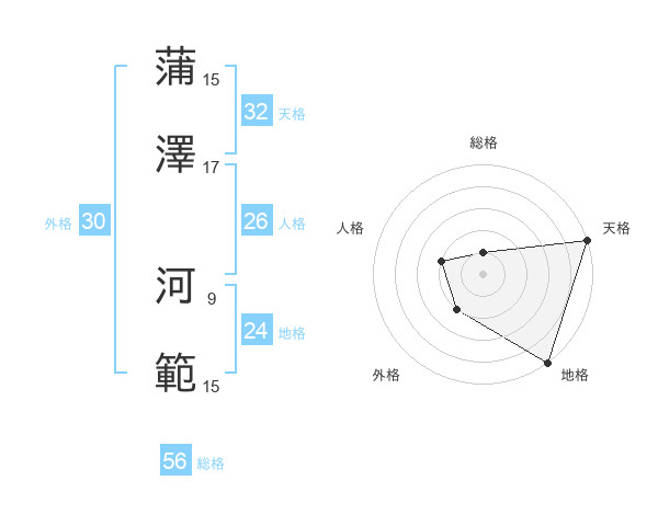 蒲澤 河範さんの総格は56画の1点!