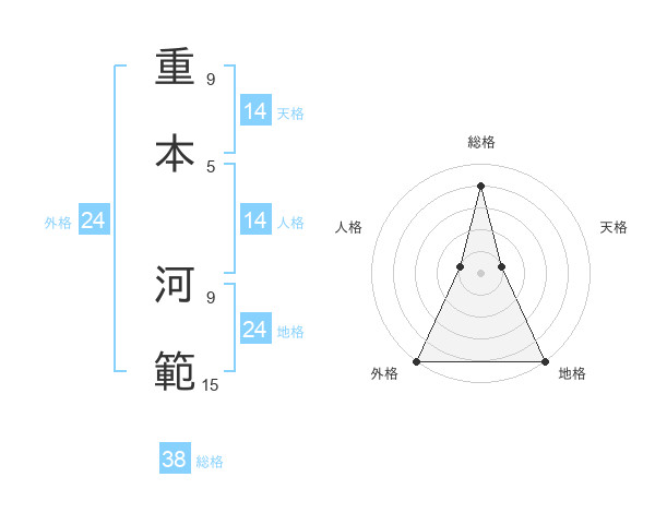 重本 河範さんの総格は38画の4点!