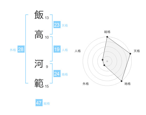 飯高 河範さんの総格は47画の5点!