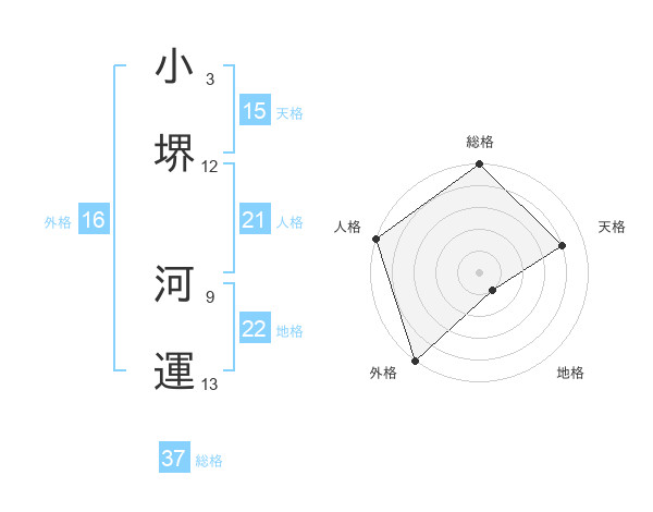 小堺 河運さんの地格は22画の1点!