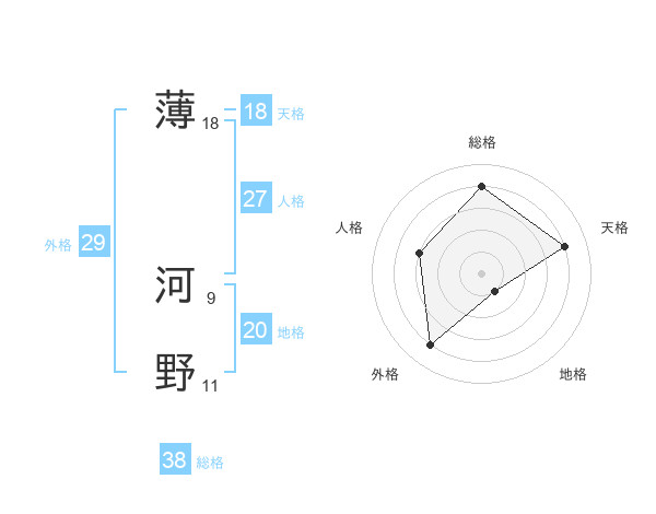 薄 河野さんの天格は18画の4点!