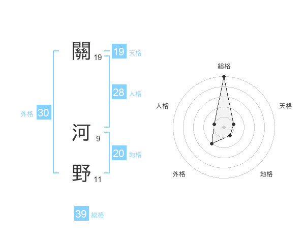關 河野さんの総格は39画の5点!