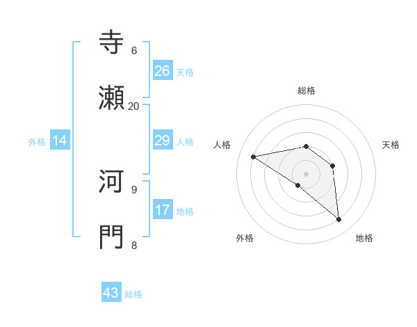 寺瀬 河門さんを姓名の画数から五運を鑑定