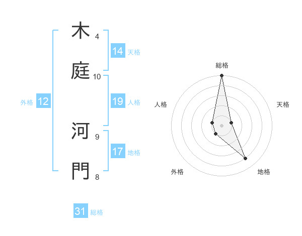木庭 河門さんの総格は31画の5点!