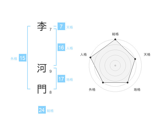 李 河門さんの総格は24画の5点!