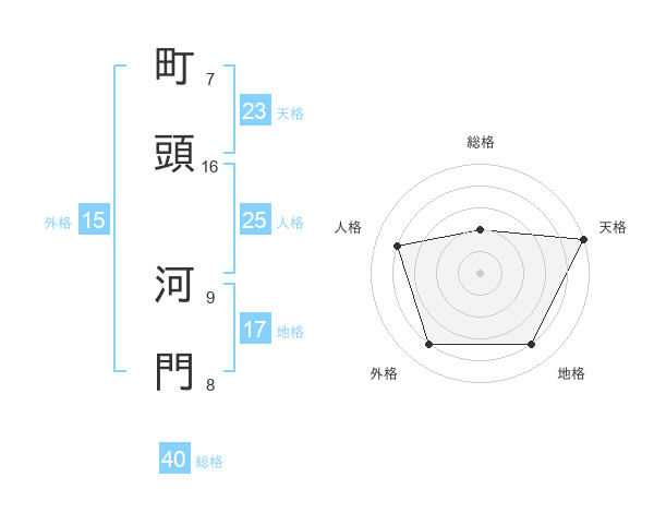 町頭 河門さんの総格は40画の2点!