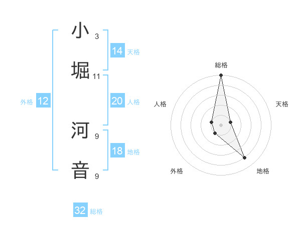 小堀 河音さんの総格は32画の5点!