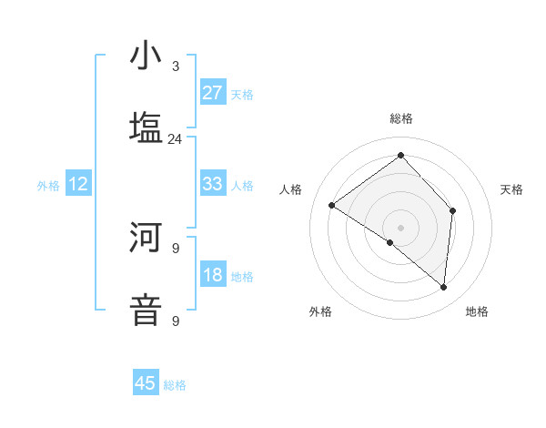 小塩 河音さんの総格は45画の4点!