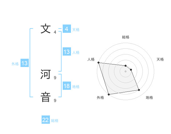 文 河音さんの総格は22画の1点!