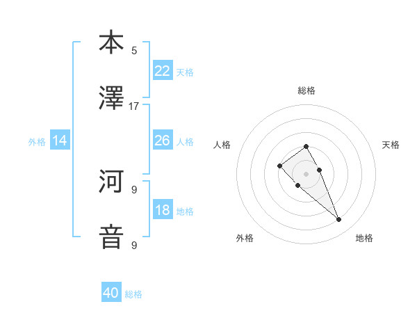 本澤 河音さんの総格は40画の2点!