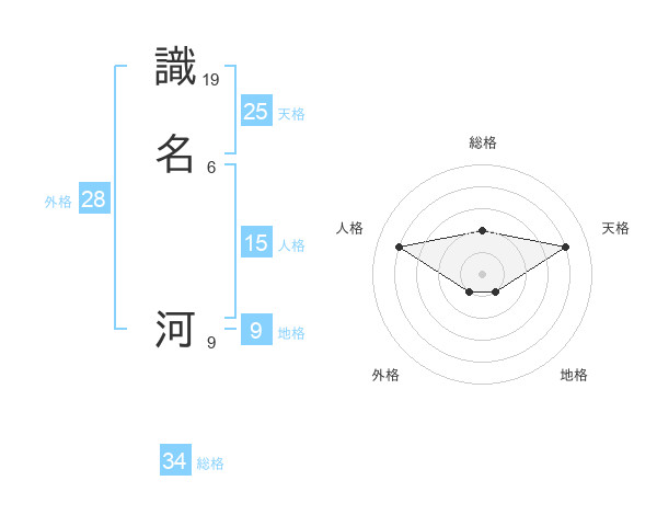 識名 河さんの総格は34画の2点!