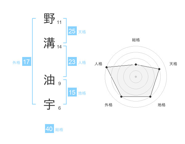 野溝 油宇さんの天格は25画の4点!