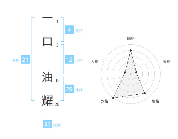 一口 油耀さんの総格は33画の4点!