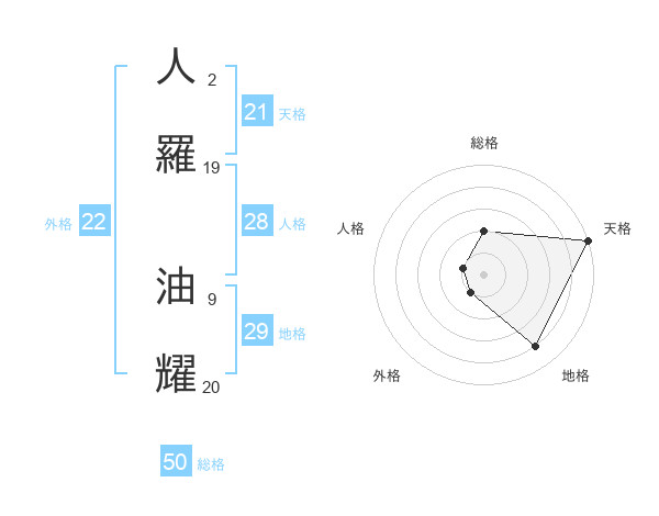 人羅 油耀さんの総格は50画の2点!