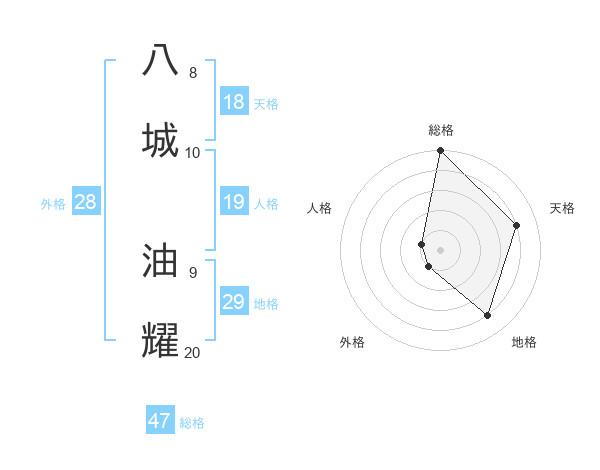 八城 油耀さんの総格は47画の5点!
