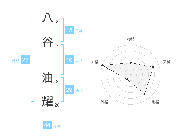 八谷 油耀さんを姓名の画数から五運を鑑定