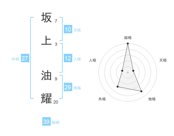 坂上 油耀さんの総格は39画の5点!