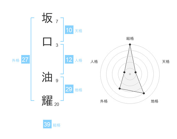 坂口 油耀さんの総格は39画の5点!