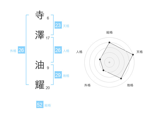 寺澤 油耀さんの総格は52画の4点!