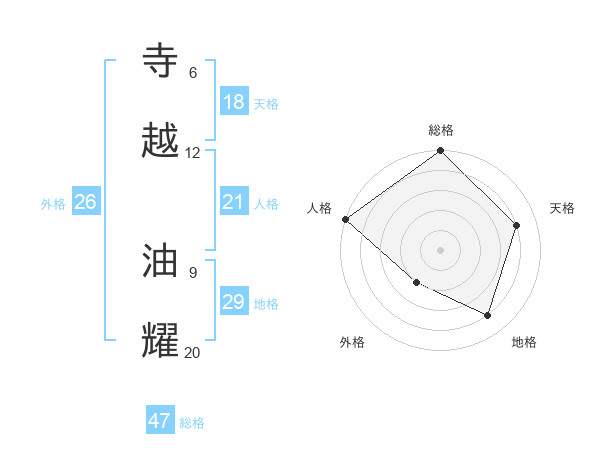 寺越 油耀さんの総格は47画の5点!