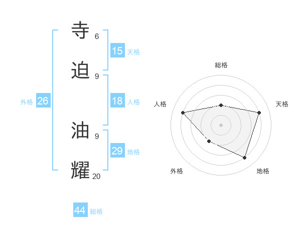 寺迫 油耀さんの天格は15画の4点!