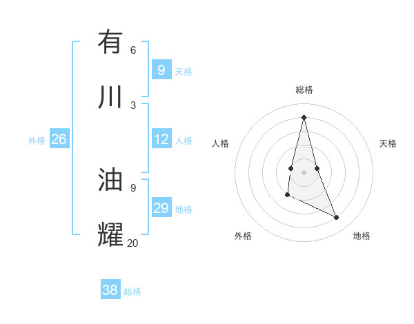 有川 油耀さんの総格は38画の4点!