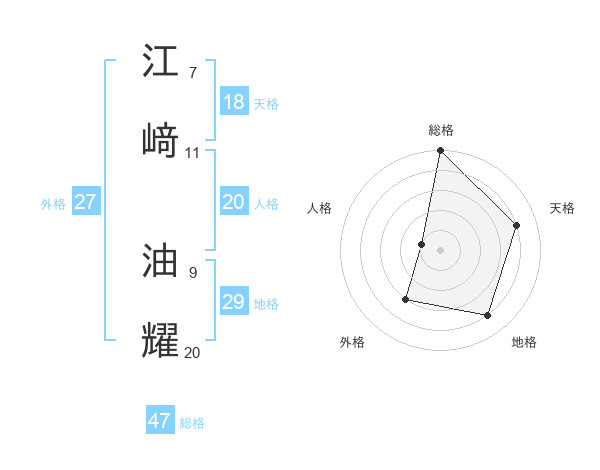 江﨑 油耀さんを姓名の画数から五運を鑑定