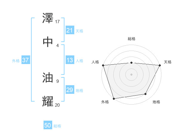 澤中 油耀さんを姓名の画数から五運を鑑定