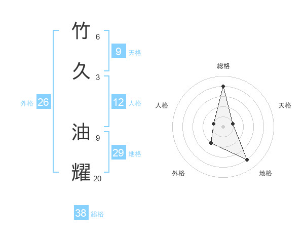 竹久 油耀さんの総格は38画の4点!