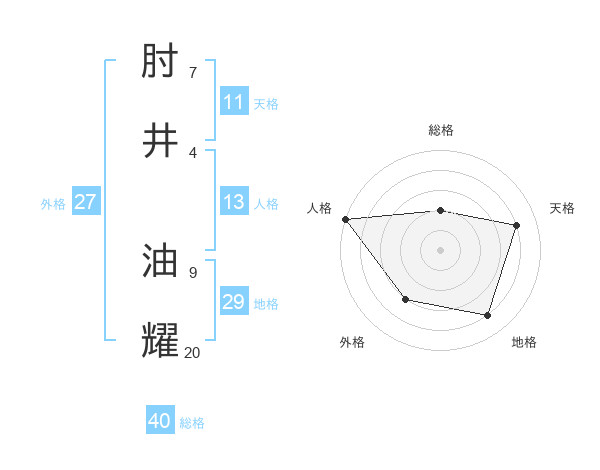 肘井 油耀さんの総格は40画の2点!