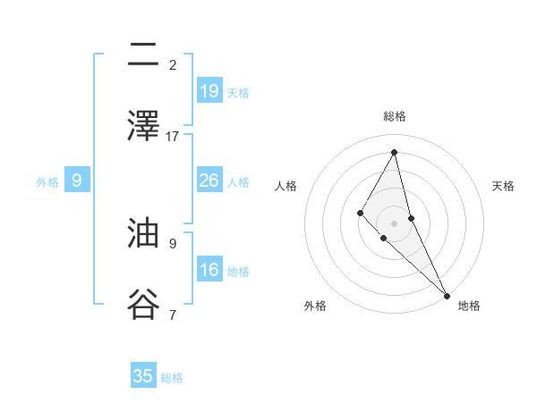 二澤 油谷さんを姓名の画数から五運を鑑定
