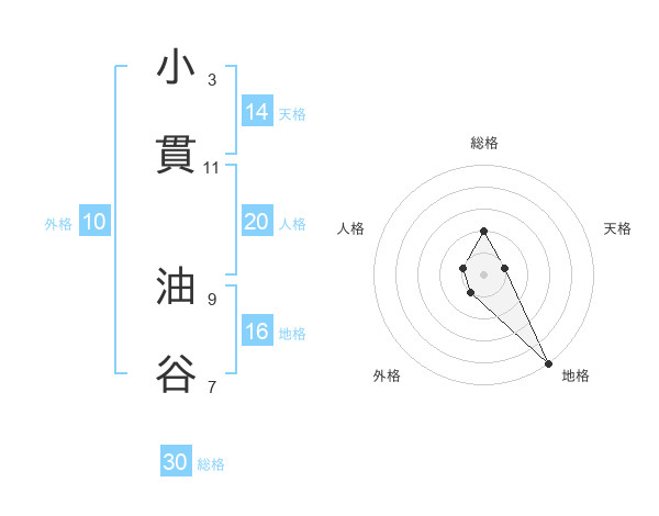 小貫 油谷さんの総格は30画の2点!
