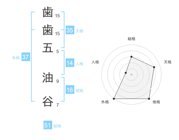 歯歯五 油谷さんを姓名の画数から五運を鑑定