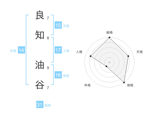良知 油谷さんの総格は31画の5点!