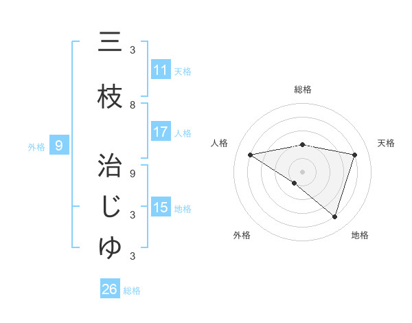 三枝 治じゆさんを姓名の画数から五運を鑑定