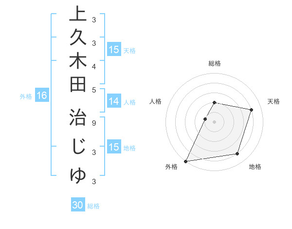 上久木田 治じゆさんを姓名の画数から五運を鑑定