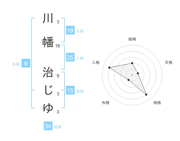 川幡 治じゆさんを姓名の画数から五運を鑑定