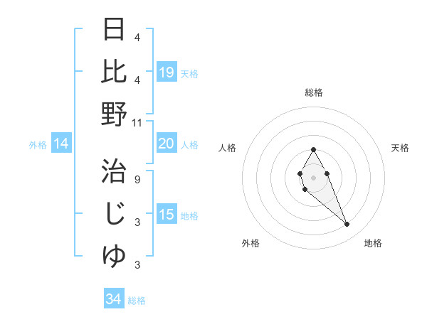日比野 治じゆさんを姓名の画数から五運を鑑定