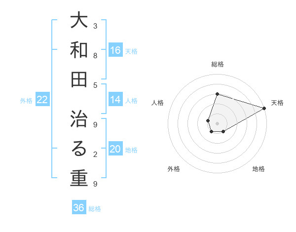 大和田 治る重さんを姓名の画数から五運を鑑定