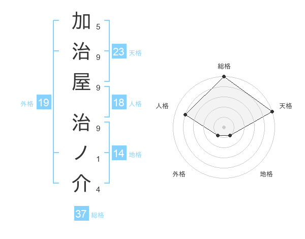 加治屋 治ノ介さんを姓名の画数から五運を鑑定