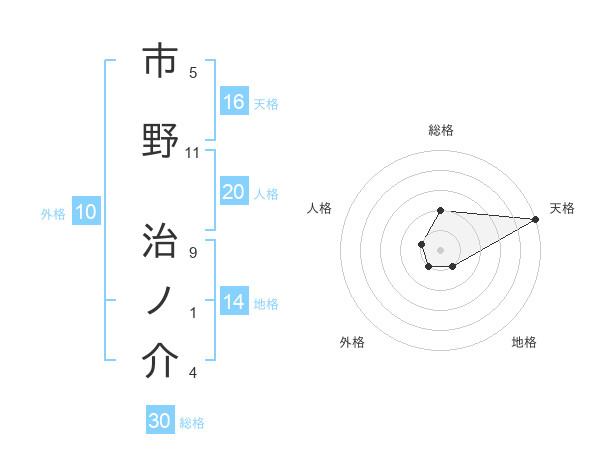 市野 治ノ介さんを姓名の画数から五運を鑑定