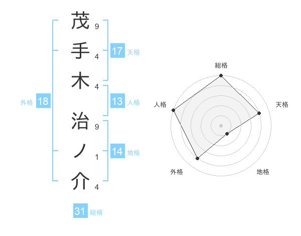 茂手木 治ノ介さんを姓名の画数から五運を鑑定