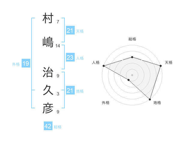 村嶋 治久彦さんを姓名の画数から五運を鑑定