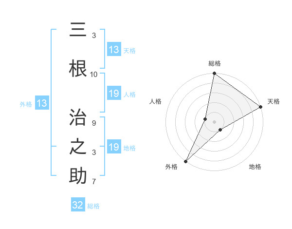 三根 治之助さんの天格は13画の5点!