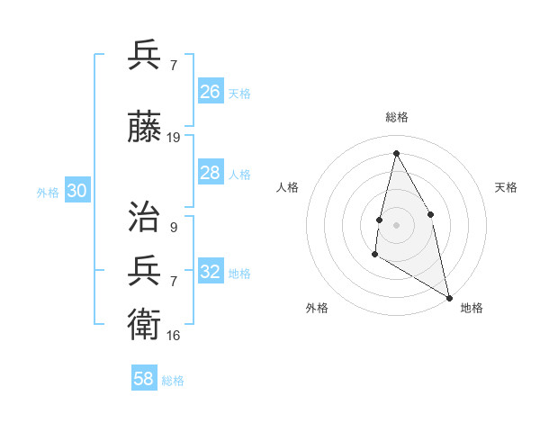 兵藤 治兵衛さんを姓名の画数から五運を鑑定