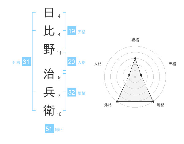 日比野 治兵衛さんを姓名の画数から五運を鑑定