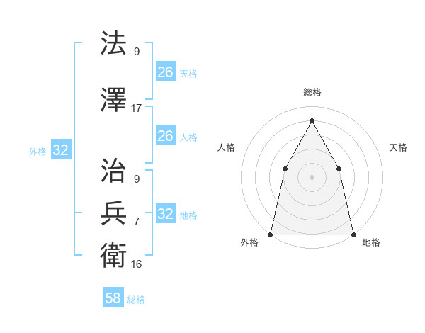 法澤 治兵衛さんの外格は32画の5点!