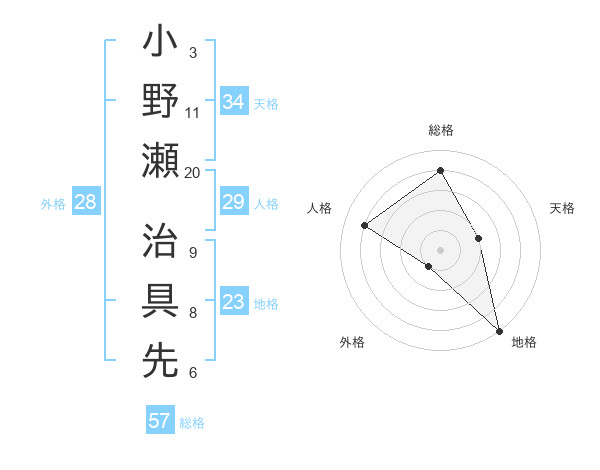 小野瀬 治具先さんを姓名の画数から五運を鑑定