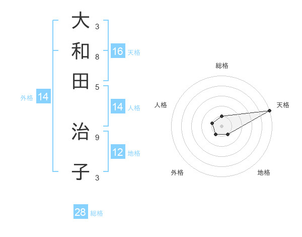 大和田 治子さんの天格は16画の5点!