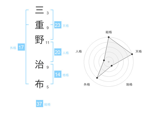 三重野 治布さんの天格は23画の5点!